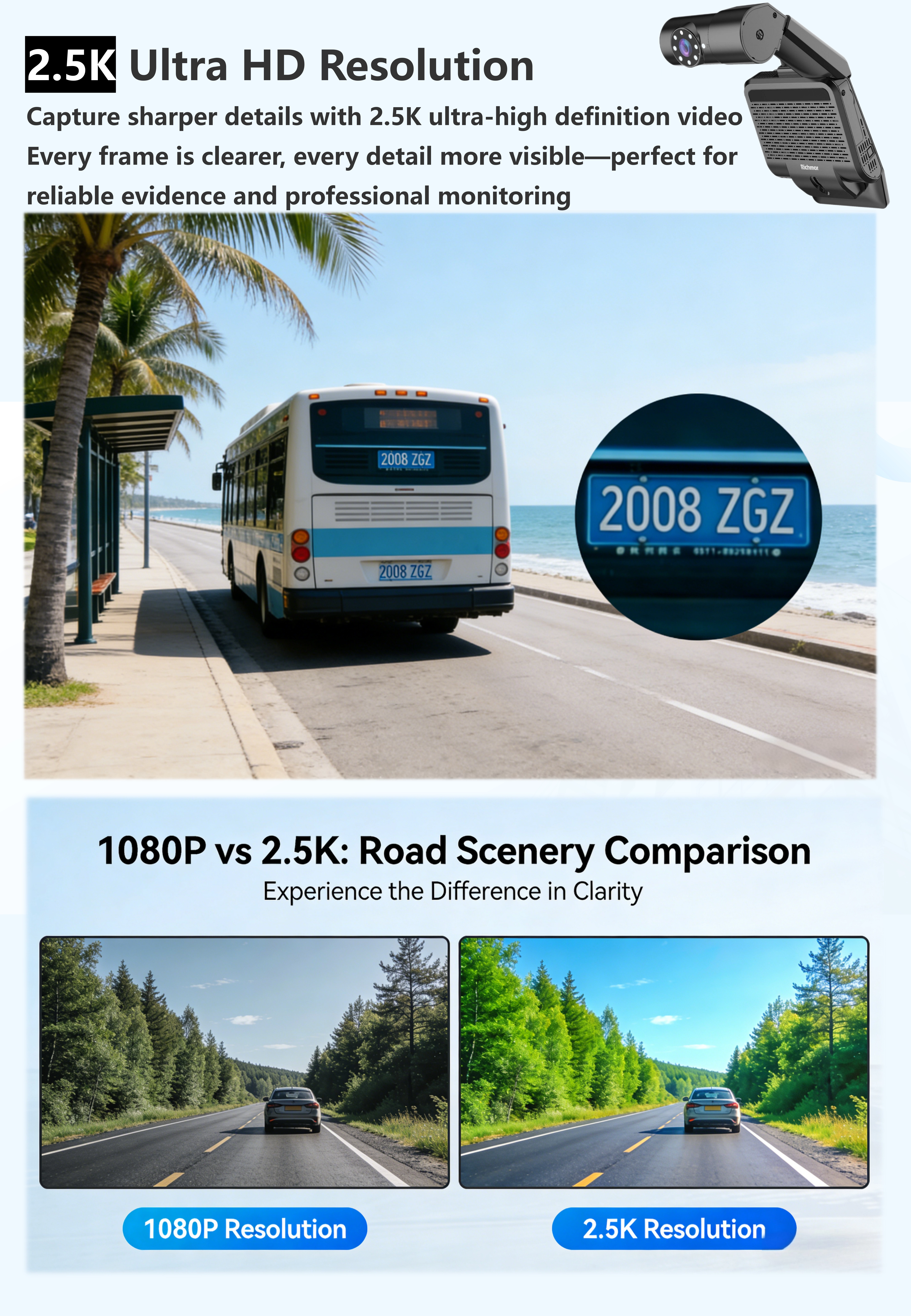 - · Caméra frontale 2,5K (2560 × 1440) + entrée vidéo jusqu'à 6CH