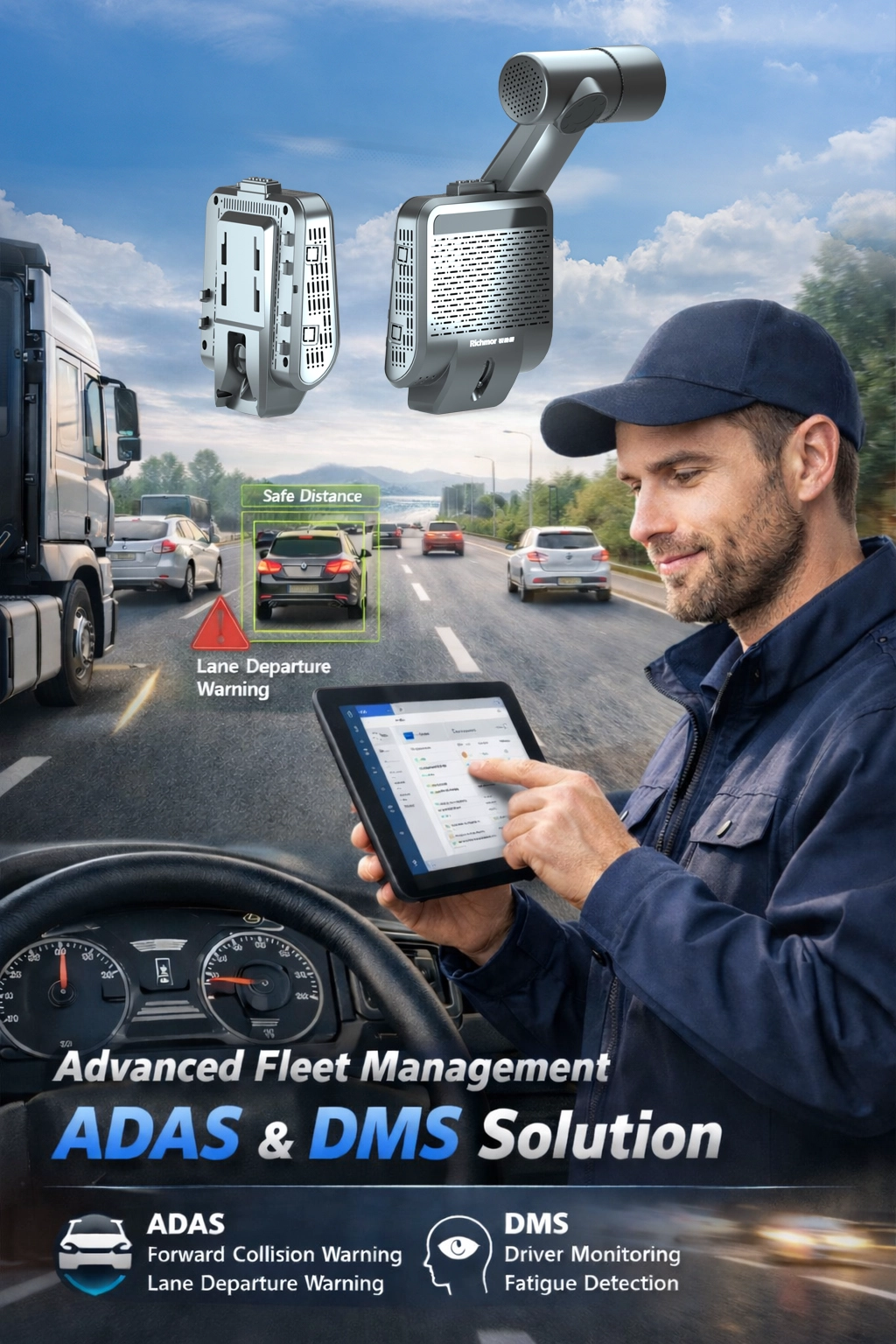 Caméra frontale Smart Fleet AI Dashcam 2,5K avec extension 6CH et identification faciale