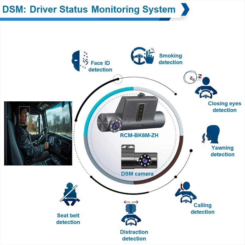 ① H.265/H.264 hardware compression, powerful AI processor, with neuronal logic reasoning engine, support for deep learning algorithms. ② Integrated ADAS camera, can expand 1-2 AI camera input. Support DSM and environmental monitoring. ③ ADAS assist driving function——Integrated with ADAS camera, advanced auxiliary driving warning function can be realized (supporting lane departure detection and warning, front-vehicle collision detection and warning, vehicle proximity warning, etc.) ④ DMS camera driving behavior analysis——It can connect the DMS camera to give alarm warning and upload to the monitoring center for dangerous driving behaviors of drivers, including: fatigue (closing eyes, yawning), distraction, smoking, talking on the phone, etc ⑤ Driver face recognition function——Face recognition attendance on the basis of management can also prevent the driver illegal substitution, non-compliance of the driver operation of the problem, standardize the driver and operation management. ⑥ Beidou /GPS positioning, support the ministry of JT/T808, JT/T1076, JT/T905, Geely, Su Biao and other platforms to report transmission.Happy new year 2024 -Richmor team