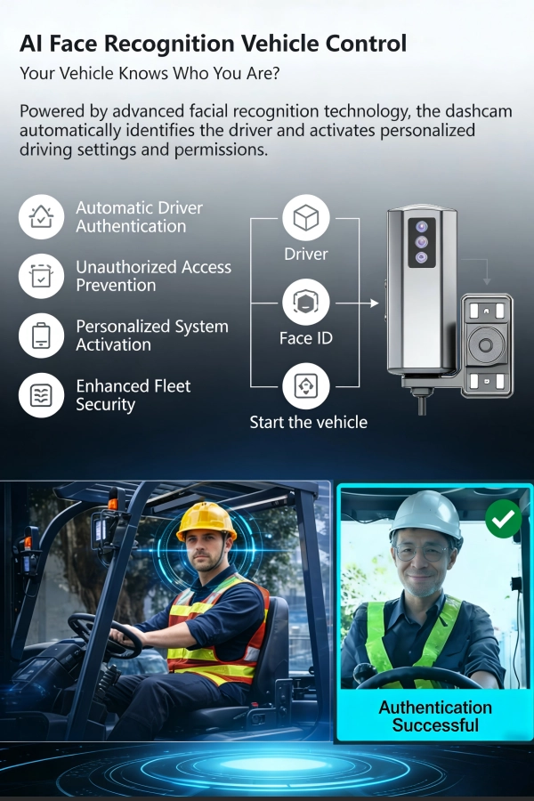 Industrial Forklift AI Camera System | DMS Face ID BSD 4G GPS All-in-One