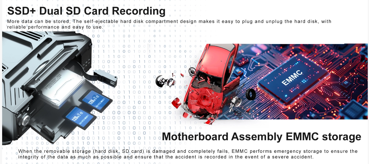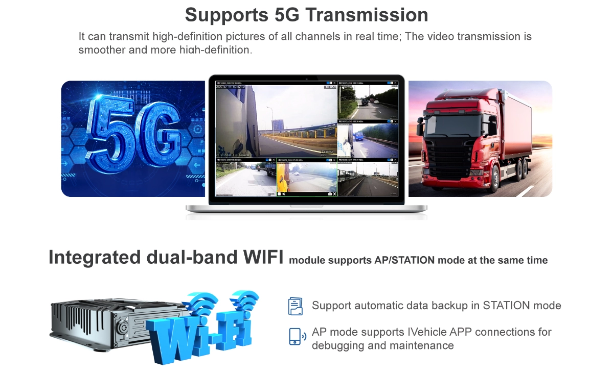 √8CH 1080P/720P H.265 recording √Support HDD(SSD) 2TB*1+ SD Storage MAX 512G*2 √Integrated 16GB EMMC storage √4G Optional for online fleet management platform √WIFI (Optional) for data transmission or I-vehicle APP(Debug APP) √Basic RS232*3 ,RS485*1, LAN*1,USB*2 , (VGA and CAN optional) √Support RFID/Fuel sensor/Tire pressure monitor/temperature sensor customized...., √ADAS/DSM/BSD/APC/HOD/3D 360AWM AI function optional (DSM support Face ID+Seat-belt) √Built-in G-sensor support abnormal vibrations/rollover/collision/ sudden braking /will alarm and upload platform automatically √IO Alarm: 10CH input 2CH output √Relay cut remote cut-off power/oil √Support GPS upload after the vehicle is powered off √Integrated MIC and speaker; supports TTS and voice broadcasting, √Free Hetu Software for fleet management √Operation: remote controller,USB Mouse,Mobile APP,CMS remotely √Power supply: Support 8V-36V. (Delay-off time 24H) √Size:196(W) mmx60(H)mm x188(D)mm