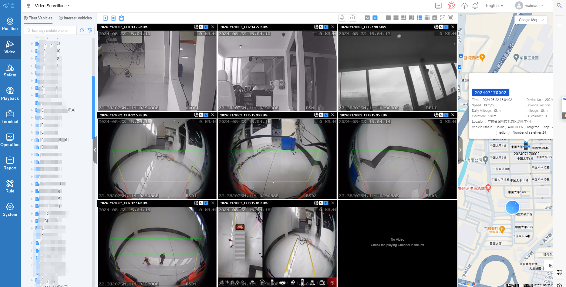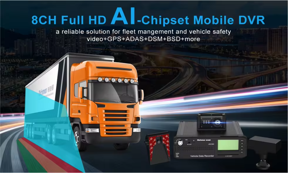 √8CH 1080P/720P H.265 recording √Waterproof and anti-vandal AI MDVR IP67 √SD Storage MAX 512G*2 (SSD Optional) √4G Optional for online fleet management platform √With WIFI for data transmission or I-vehicle APP(Debug APP) √Basic RS232*5 ,RS485*1,USB*2 , CAN*2 √Support RFID/Fuel sensor/Tire pressure monitor/temperature sensor customized...., √ADAS/DSM/BSD/3D 360AWM AI function optional (DSM support Face ID+Seat-belt) √Built-in G-sensor support abnormal vibrations/rollover/collision/harsh acceleration harsh braking/harsh cornering alarms and upload platform automatically √IO Alarm: 10CH input 2CH output √Relay cut remote cut-off power/oil √Support GPS upload after the vehicle is powered off √Integrated MIC; supports TTS and voice broadcasting, √Free Hetu Software for fleet management √Integrated supercapacitor can keep the device running after a power outage, ensuring continuous data. √Monitor/Relay/Speed sensor/Audible alarm/ LED warning lights/Safety belt sensor/Alarm display /Cargo over-height identification instrument/Electronic throttle governor these parts optional √Operation: remote controller,USB Mouse,Mobile APP,CMS remotely √Power supply: Support 8V-36V. (Delay-off time 24H) DC11~120V for forklift √Size:186mm*53mm*174mmNew Upgrade: Richmor Fleet Management Platform 3.0