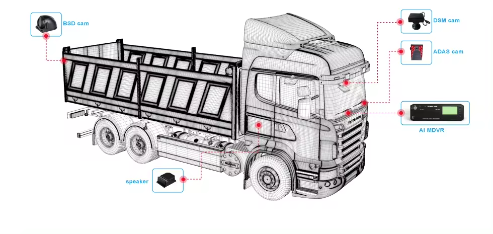 MDVR + ADAS cam + DSM cam + BSD cam + inner&outer Speaker