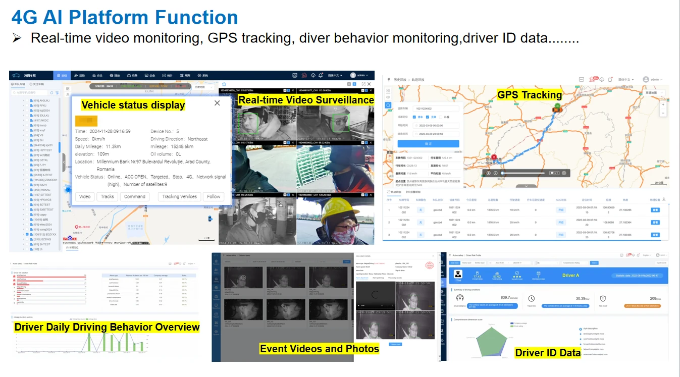 - 12.Displays records of vehicle driving status, license plate, route, speeding, and other vehicle information for easy management;