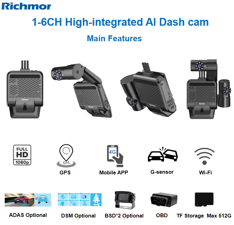 Richmor Mini AI MDVR DSM Dashcam for Truck Bus Car