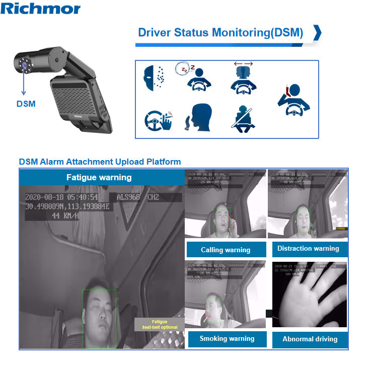Richmor Driver Face Detection DSM Dashcam for Truck Bus Car